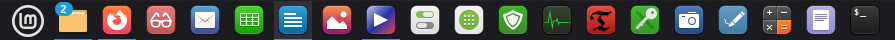 Home, Firefox, Document Viewer, Thunderbird, LibreOffice Calc, LibreOffice Writer, Image Viewer, Celluloid, System Settings, Software Manager, Update Manager, System Monitor, Timeshift, KeePassXC, Screenshot, Drawing, Calculator, Text Editor e Terminal.